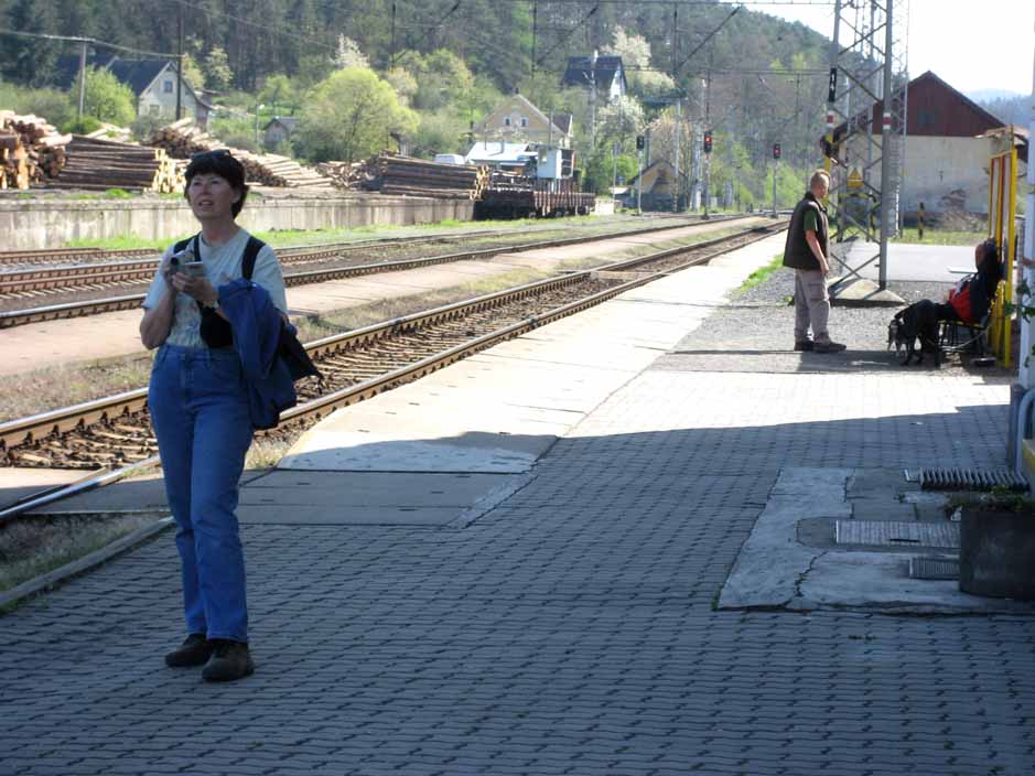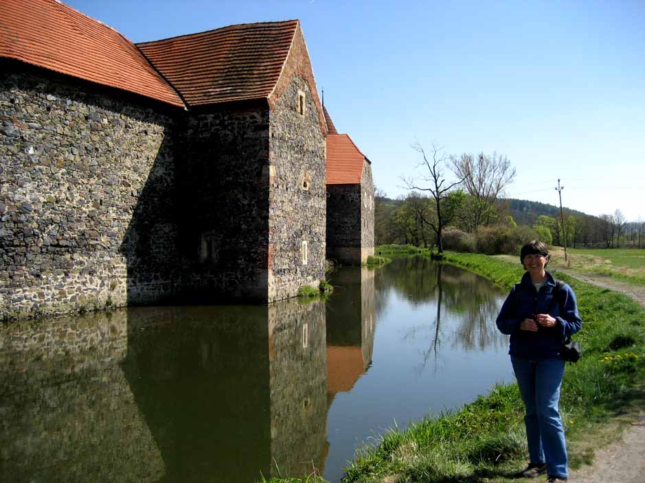 square The Plzen hl.n., short for main train station, has the best looking sweets and breads in town, so we started our Sunday there. The plan for the day was to visit a little water castle an hour south by train. We started by getting on the wrong train, facing the wrong direction, but the train had arrived at the correct time. A maintenance worker in bright orange came through to clear the train. With friendly smiles and hand signals and a smattering of German, we found that our rylich, fast train was "caput" somewhere between Prague and Plzen. Confirming this with a family, the German speaking 80ish senior was so concerned that we get the right train that he led me by hand back into the train information center and waitted while I got the scoop in English. Then he noted that "he would make sure we got on the right train and which station to get off" since they were heading the same way. Then we boarded another empty car, with others also boarding, and waitted for an engine to come hook up to us -- a very short train indeed. During the trip it was amusing to catch the kind senior's eye, watching for the ney and finally OK nod. People really want to help and folks older than 60 still speak fluent German, and my minimal knowledge of numbers and courtesies are helping. Svihov was originally built with an outside moat, and a complicated system to flood the inside 24 feet moat, now a grassy area, as well as a center area. It had an outside wall, an inside wall, and the buildings. One of the kings at the time decided that rebels could cause trouble and retreat to this well-fortified haven, so he had the whole eastern half of the walls torn down. From the available pictures it had been a veritable fortress. From there we took the train to the next stop Klatovy and enjoyed sunset dinner on the cobbled square. Everyone was clammering for ice cream and we saw an older couple walk their bikes through town, looked like locals. Wish I could get Lonnie on the bike. Still no pictures of Lonnie but now I am working on it. Note the new cover picture from yesterday's local walk. Julie |