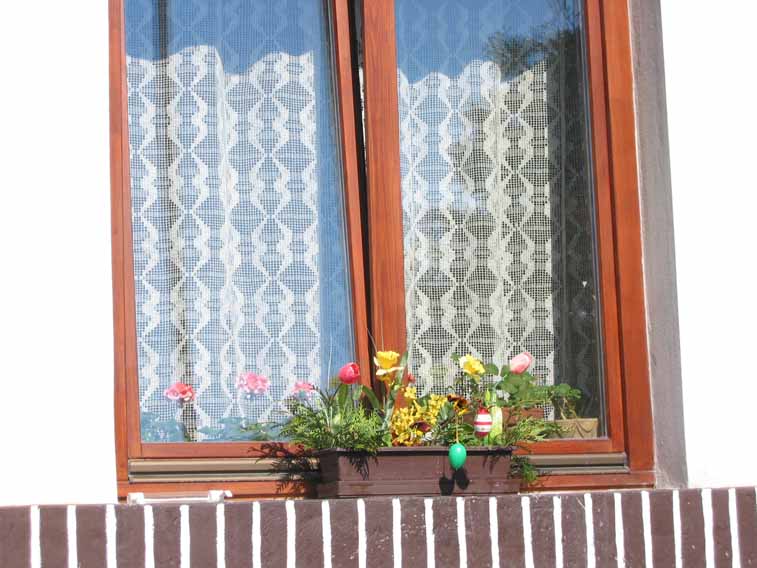 (Pilsen). Every window has lace curtains,